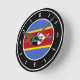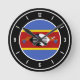 Eswatini Flag Elegante Round Clock com a bandeira Eswatini posicionada no meio e adoráveis números de relógio branco na borda do relógio. O delicioso fundo preto com os elementos ovais brancos finaliza o design colocando ênfase na elegância. A bela combinação de preto e branco com a hábil integração das cores da bandeira nacional faz deste relógio o presente perfeito e a peça do excelente na parede. © PaísesDoMundo