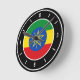 Etiópia Flag Elegante Round Clock com a bandeira etíope posicionada no meio e adoráveis números de relógio branco na margem do relógio. O delicioso fundo preto com os elementos ovais brancos finaliza o design colocando ênfase na elegância. A bela combinação de preto e branco com a hábil integração das cores da bandeira nacional faz deste relógio o presente perfeito e a peça do excelente na parede. © PaísesDoMundo
