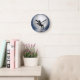 Acrescente a fantasia e a magia de um unicórnio silenciado contra uma lua de cheio que se ergue no oceano - relógio de parede redonda para arte, parede e decoração domiciliar. Personalize com o nome, as iniciais, a mensagem, a citação - ou qualquer coisa que você desejar. Esta Silhouette Unicorn Personalizada Round Clock é uma ideia de presente de excelente.