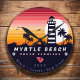 Relógio Redondo Farol de Myrtle Beach SC Retro Sunset Souvenirs