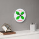 Este relógio espetacular apresenta quatro folhas sagradas completas com uma fruta vermelha para juntá-las. A fruta parece escutar na luz e as folhas têm uma qualidade tridimensional para elas. O texto vermelho ao redor do santo lê Feliz Natal.