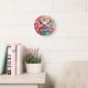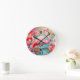 Relógio Redondo Flamingo rosa tropical com flores- 87361