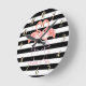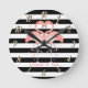 Relógio Redondo Flamingos Bonitos Apaixonados, Stripes Brancas Neg