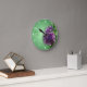 Linda flor de tulipa roxa contra um relógio de parede personalizado de fundo verde pálido. Fotografia de Susan. Substitua o texto no modelo ou não se esqueça de excluir sem texto. Clique em Personalizar para alterar o tamanho, estilo e cor da fonte e para adicionar texto. Entre em contato comigo com quaisquer perguntas ou solicitações de design. Por favor, visite minha loja no Tesouro dos Olhos Sorrindo para ver mais cartões e presentes de design de flores, animais, natureza e arte digital para casa e escritório.