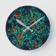 Relógio Redondo Flor virtual em azul gradiente, estilhaçada