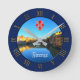 Este relógio de parede personalizável apresenta uma imagem do rio Arno atravessada por Ponte Vecchio - uma das maiores atrações turísticas de Florença, Itália, e a Flor-de-Lys vermelha (símbolo da cidade) colocadas no meio. Personalize-o hoje com o seu próprio texto para criar instantaneamente um de bom souvenir!