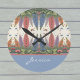 Este encantador relógio de parede monograma apresenta um lindo padrão de aparência vintage de flores lupinas em azul, roxo e pêssego, com borboletas pairando, e forragem rica. No fundo do relógio está um bloco colorido de azul empoeirado com um monograma branco cremoso. Digite o texto desejado na seção Personalizar e certifique-se de substituir o espaço reservado. O padrão lembra os padrões têxteis britânicos do final dos anos 1800 e início dos anos 1900, com suas cores muda e formas e padrões ricas. Esta trabalho de arte é baseada em trabalho de arte de conteúdo generativo, que foi inserido em um padrão repetido estilo "caleidoscópio". Lupinas têm lindas linhas altas de flores semelhantes à ervilha, e atraem polinizadores como as abelhas.