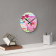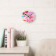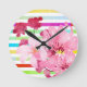 Relógio Redondo Flores E Listras Rosa bonito