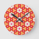 Relógio Redondo Flores Modernas em Floral Geométrico Vermelho e Pê