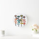 Este relógio tem um design moderno do século médio de flores retrorreflectoras em uma paleta de cores retrorcolorida ou vermelha, laranja, verde e azul.