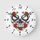 Relógio Redondo Flores Vermelhos Brilhantes Verde Deixa Crânio De