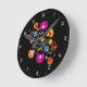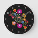 Composição folclórica única com flores cor-de-rosa e amarelas inspirada pela arte folk Wycinanki de Lowicz . Bonito como presente para a pessoa amorosa popular. Relógio redondo com folclore polonês