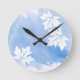 Relógio Redondo Folhas de mapeador azul-aquarela do céu moderno