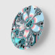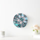Relógio Redondo Fractal Floral em tons de lacre, rosa e azul
