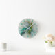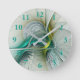 Relógio Redondo Fractal Teal De Turquoise Com Ouro Hipnótico