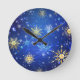 Relógio Redondo Fundo Azul XMAS com Flocos de Neve Ouro