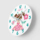 Aqui está um relógio adorável para o quarto de uma menina, especialmente se ela está aprendendo a dizer o tempo. O centro apresenta uma garota bonita num vestido de pokadot rosa e branco. Ela está vestindo antenas de joaninha, com uma flor rosa e uma joaninha rosa ao lado dela. Acima da imagem está o nome dela, também em rosa. Os números brilhantes tornam o relógio fácil de ver e ler. Tudo é colocado sobre um fundo branco. Gráficos por Prettygrafik Design, © Prettygrafik.com