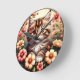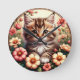 Adorável gatinho sentado dentro de uma deslumbrante borda floral circular com flores, criando uma composição elegante e alegre que representa inocência, beleza e a calidez da natureza.