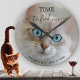 Relógio de parede com uma pintura de arte original de um gatinho fofo com seus textos personalizados (engraçados ou outros).