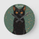 Relógio Redondo Gato Preto Místico com Olhos Laranja e Brilho