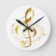 Relógio Redondo Gclef Dourado no pulso de disparo de parede branco