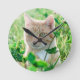 Relógio Redondo Ginger Cat com olhos verdes na grama