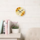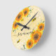 Relógio Redondo Girassóis amarelos abelhas monograma script rústic