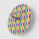 Este relógio tem um design moderno século médio de retro-hexágonos em vermelho, verde, azul e ouro.