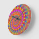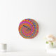Relógio Redondo Hippy Fractal Padrão Turquesa rosa e amarelo