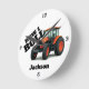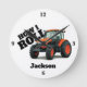 Relógio Redondo "How I Roll" com Trator de Fazenda Laranja