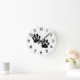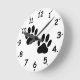 A pata do cão de desenho impresso a preto sobre fundo branco. Relógios decorativos para casas e empresas como compradas para animais de estimação. Ideia de presente para amantes de cães.
