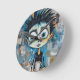 Um personagem caprichoso com olhos superdimensionados e cabelos eriçados é retratado com uma expressão atordoada sentado a uma mesa com uma xícara fumegante e uma torradeira excêntrica. Atrás do personagem, o fundo é animado, repleto de vários esboços e rabiscos que dão um tom lúdico e caótico à cena.