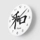 Relógio Redondo Kanji - Símbolo de Paz em Preto de Tinta