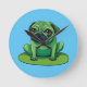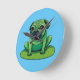 Um pinto verde bonito, parecido com um sapo sentado num lábio. A cor de fundo pode ser alterada.