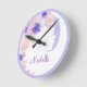 Natureza Os relógios de decoração de parede inspirados por Floral com o espaço de monograma podem personalizar com qualquer nome de mulher ou mulher ou com as iniciais de monograma num belo design botânico em tons de cor rosa, roxo e pêssego.