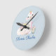Relógio Redondo Llama Azul e Branco com Flores Nome do Bebê
