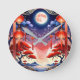 Uma representação serena de uma lua de cheio brilhante iluminando o céu noturno, colocada contra um pano de fundo dos elementos tradicionais chineses. As lanternas vermelhas penduradas nas árvores adicionam um brilho quente e festivo. A trabalho de arte evoca um sentido de harmonia e reverência para a natureza, capturando a essência da estética cultural chinesa sob a luz luminosa.