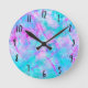 Relógio Redondo Mancha cor-de-rosa & azul do algodão doce da