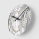 Relógio Redondo Marfim,Verde,Azul,Ouro, Seda e Pérolas