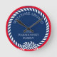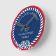 Relógio Redondo Marinho Azul, Vermelho Branco, Grelha Náutica Mono