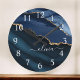 Relógio Redondo Marinho Blue Agate Geode Dourado Monograma Grande