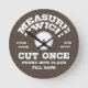 "Meça duas vezes, corte uma vez, libra no lugar, preencha lacunas, maldição, soco e chute as coisas como consequência". Texto, com uma lâmina circular. T-shirts, suores, posters, canecas, palhaço de presente novidade.