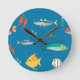 Relógio Redondo Modern Fish and Seahorse illustrated Pattern Blue