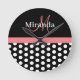 Relógio Redondo Monitor preto branco, cor-de-rosa, com Bolinhas