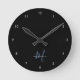 Relógio Redondo Monograma de Script Azul Preto Moderno Elegante