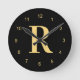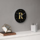 Relógio Redondo Monograma preto moderno Dourado