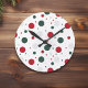 Relógio Redondo Natal Festivo Vermelho e Bolinhas Verde