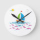 Relógio Redondo Navio de vela e peixe vermelho