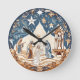 Celebre o coração do Natal com este belamente ilustrado relógio de parede, com uma cena tenra de natividade sob um céu estrelado. Mary, Joseph e o bebê Jesus se juntam a figuras atentas e motivos celestes, todos banhados em matizes macios e reconfortantes. Uma estrela radiante guia a composição, evocando paz, esperança e presença divina. Ideal para decoração de feriados ou reflexão espiritual ao longo do ano, este relógio traz uma narrativa sagrada para o seu espaço.