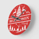 Relógio Redondo Nome da Família Personalizada do Red Christmas | F